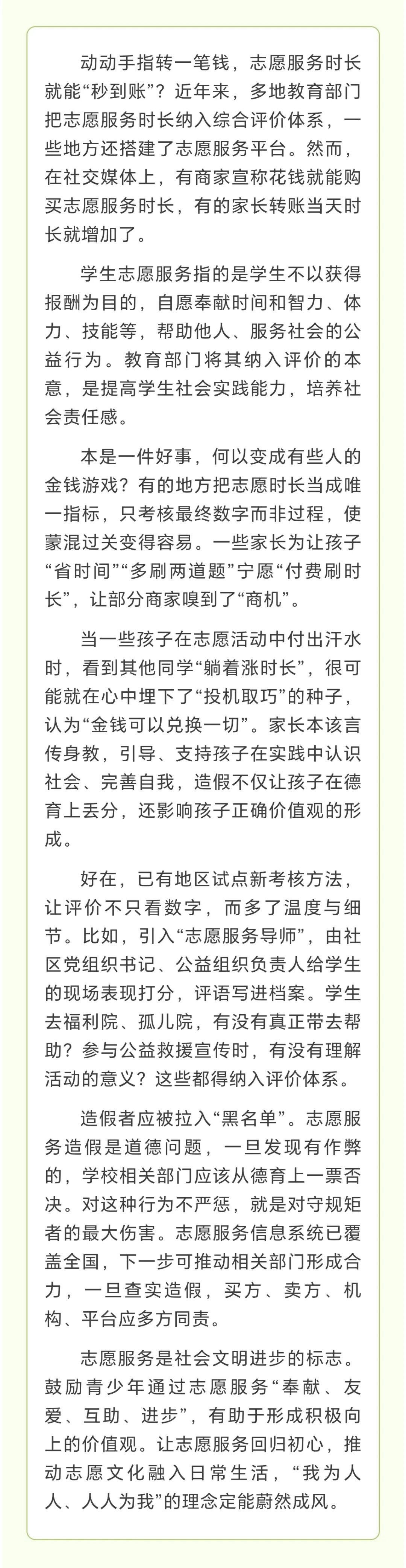 人民日报:志愿服务时长,岂能变成金钱游戏